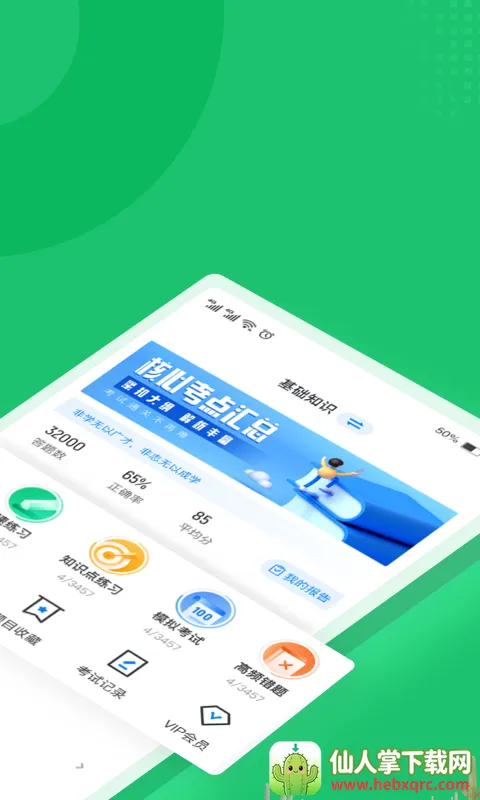 高质量模拟考卷:新增模拟考试功能,用户可按自我练习考点选择对应模拟试卷,也可选择模拟整卷考试,还能挖掘学习盲点,强化练习,预测命题趋势,助力快速提分。