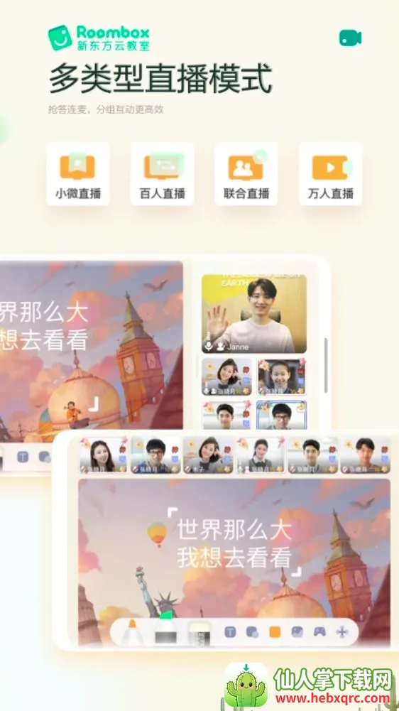 新东方roombox2026最新版本由新东方教育科技集团官方开发。功能强大齐全,有互动1对n房间及丰富互动功能,高清流畅。支持多种终端,教学场景贴合,直播流畅,互动有趣,接入简单,操作便捷,还有多种特色功能。