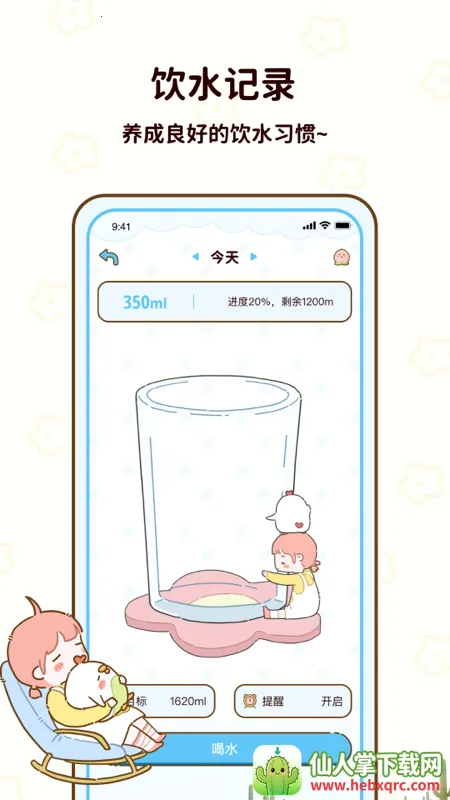 4. 饮水提醒记录:这是不爱喝水星人的福利,饮水时间实时提醒,让你不会错过喝水时间,保障身体健康。