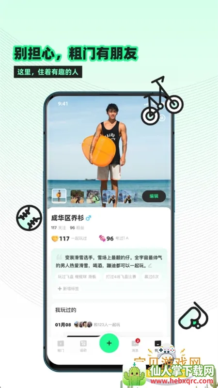 2. 结伴交友:能找到志同道合的朋友,一起GET新技能、尝试新体验,还可成立俱乐部,相约同城朋友探索新事物。