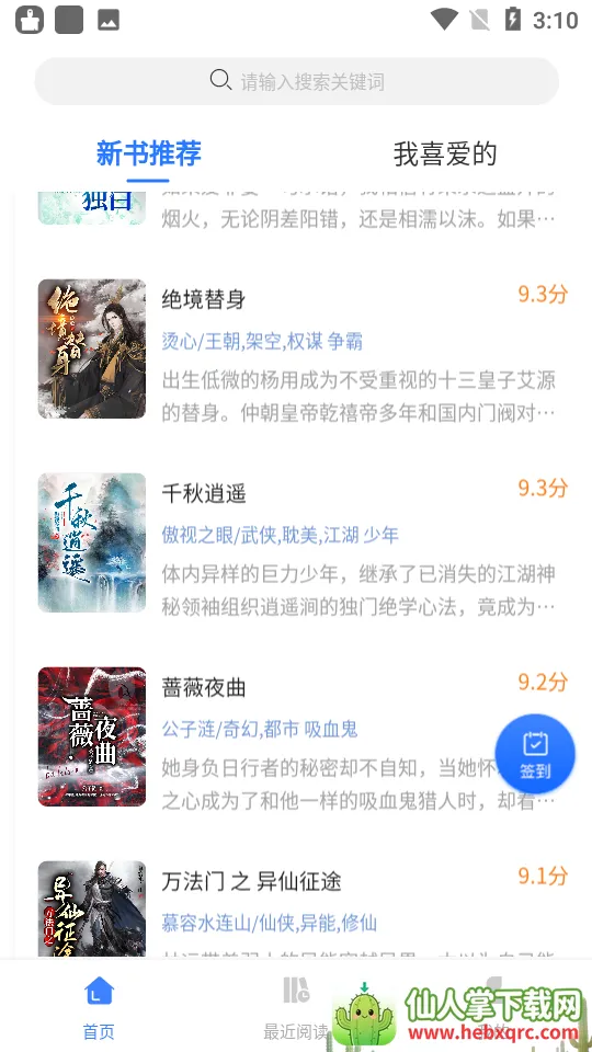 2. 每天提供新书推荐,专业编辑把关,找小说方便。