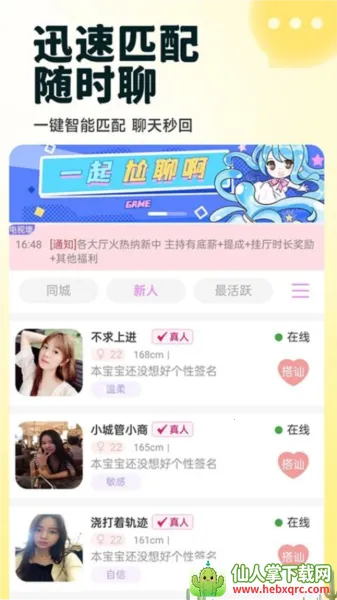 精准同城推荐:根据地理位置智能推荐附近的用户,方便随时邀约线下见面,轻松结识同城新朋友。