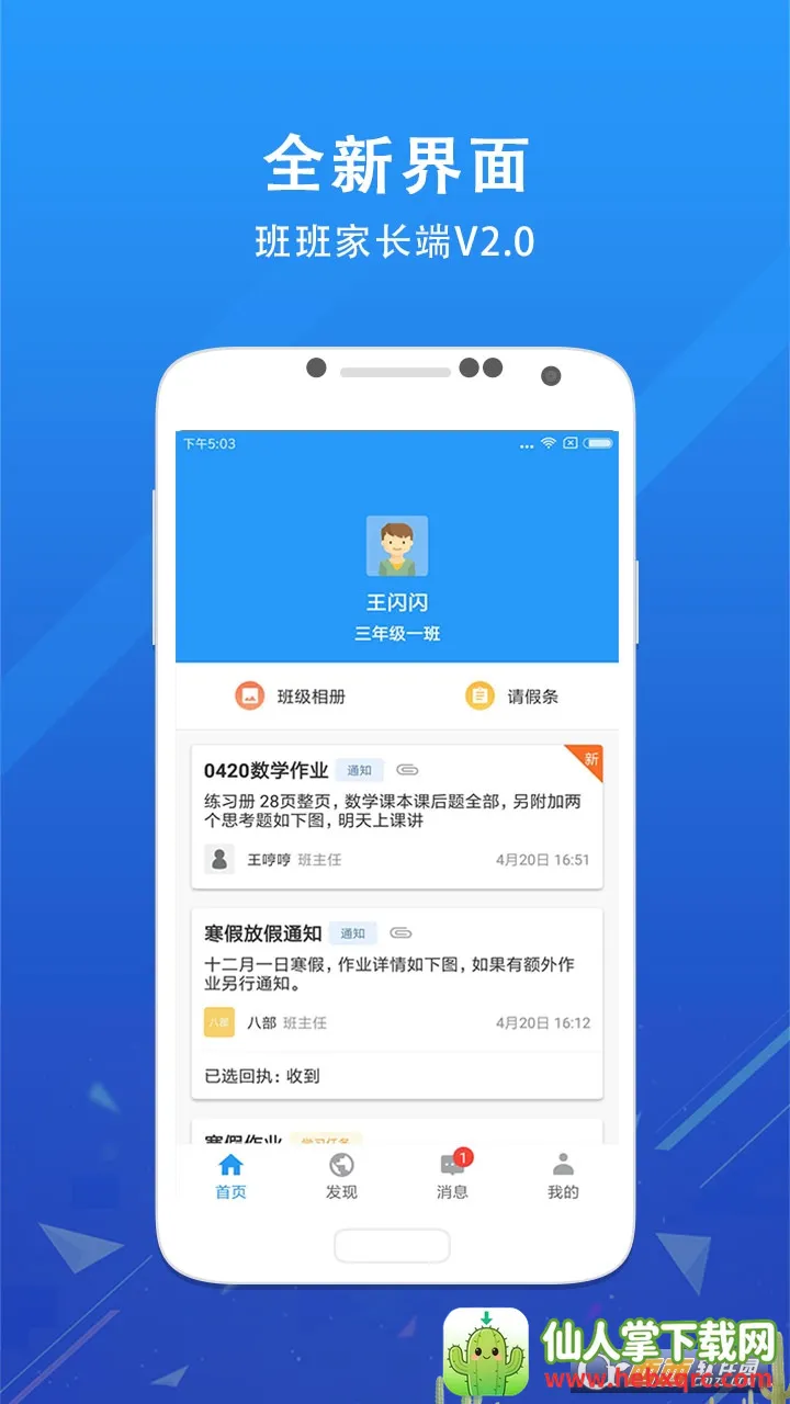 爱学班班家长端是专为家长设计的手机应用,能让家长轻松掌握孩子在校学习进展,查看作业、成绩单等,支持与老师一对一交流、给孩子发消息、在线请假等,助力家校共育与孩子成长。