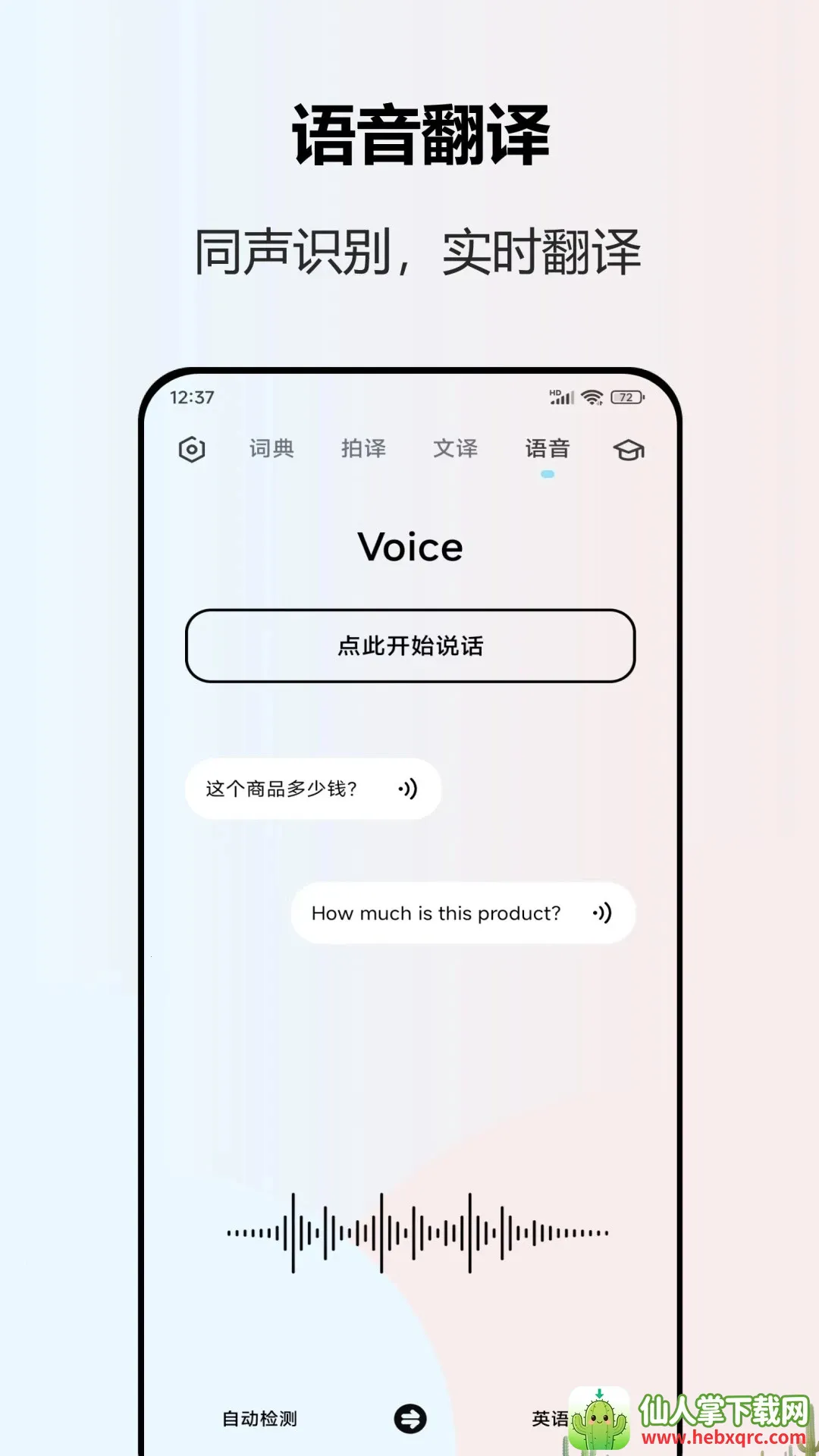 3. 智能精准翻译:智能识别多语言内容,实时输出精准译文,适配多场景需求。