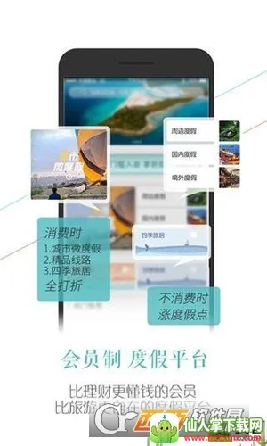 2. 多样度假选择:提供共享度假、客房预订、四季旅居、特产商城、精品线路、微度假、私人定制等丰富服务。