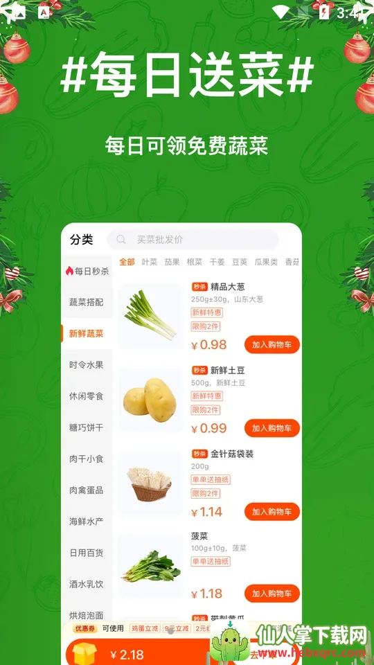 2、商品超丰富:提供海量蔬菜资源,还有各类生鲜水果、禽蛋肉类、饮料和零食等,能满足用户对不同食材的需求。