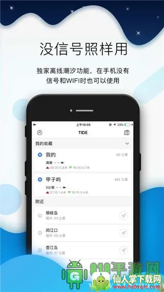 3. 独家离线潮汐实时预测功能,即便手机没信号和WIFI也可放心用。