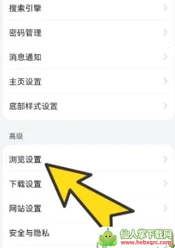 1、先打开浏览器,点击浏览设置选项;