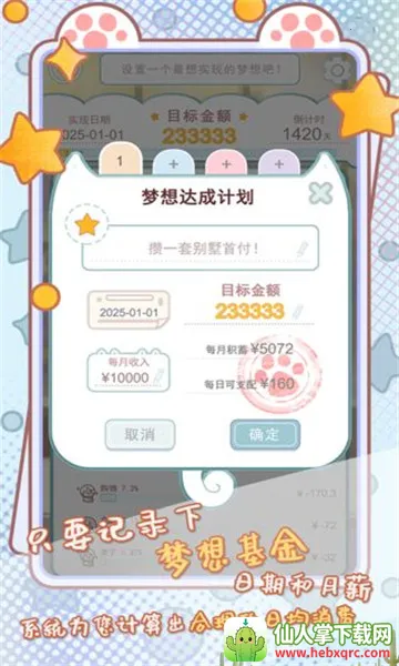 3. 实用记账功能:具备实用的记账功能,可详细记录每一笔收支,从每月固定收支到每日开销明细都能设置和记录。设置梦想清单后,游戏会根据收支状况计算推荐消费金额,协助用户养成规划消费的好习惯。