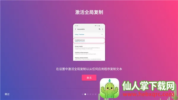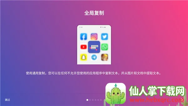 全局复制Universal copy.是专注突破Android设备文本复制限制的实用工具。通过无障碍服务与OCR技术,可全局复制、OCR扫描、智能检测。免费无广告,数据本地存,多触发方式,还支持多语言及跨平台间接提取文本。