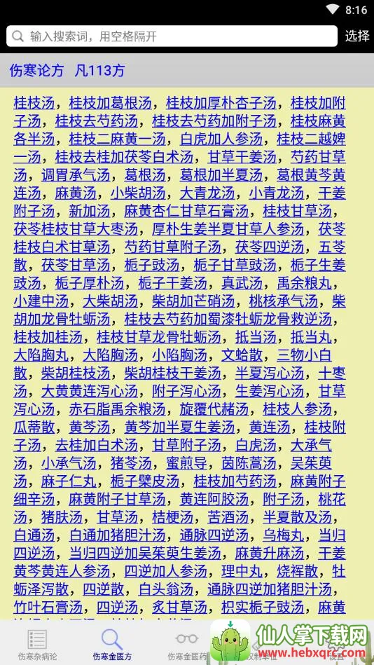 伤寒论查阅安卓版是一款专为医学生及中医爱好者打造的应用。整合伤寒论知识、金匮方、药及汉制单位介绍,无广告,安装包小。以表格展示原文及方,支持多种搜索方式,方便查看、搜索与学习研究。