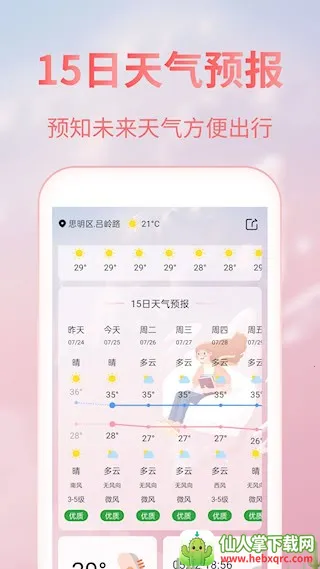 1. 界面设计贴心:充分考虑女性审美偏好,采用柔和色彩搭配与圆润图标设计,视觉体验温馨舒适,区别于传统天气软件的商务风格。