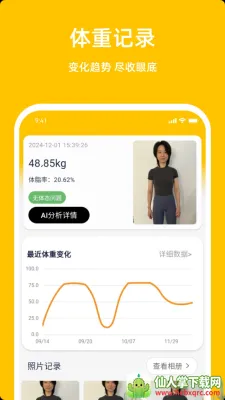 1. 采用简单的照片记录方式,让你记录自己的体重变化,轻松记录体重和管理个人健康。