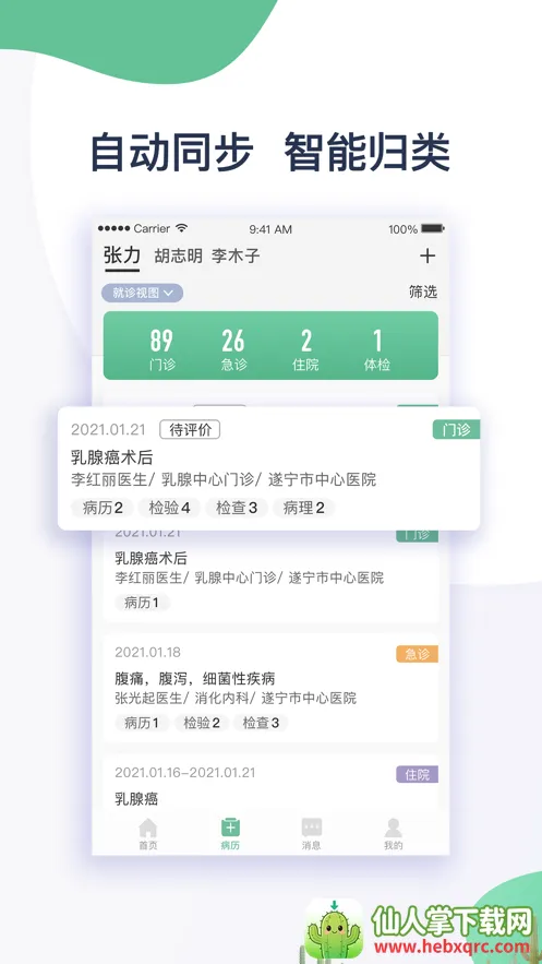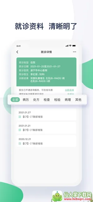1. 看病数据同步展示,能让患者快速查看最新消息分类和智能归类内容,所有资料信息安全加密保护。