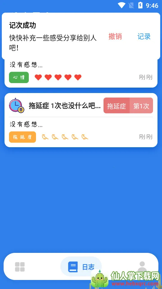 4. 记录分享:每次计次均可记录当时的心情图片并生成卡片分享给别人,能获得满满的成就感,还可以将自己的记录分享给其他用户,一起分享记录带来的乐趣。