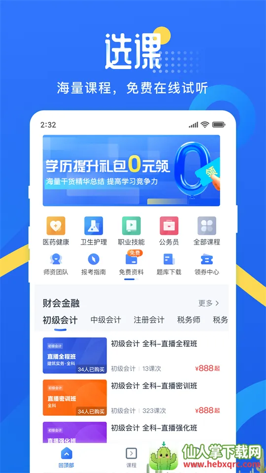 方向齐全,按需选择:学习首页提供多类目入口,支持快速切换学习目标,按照专业考试类别挑课更省心。