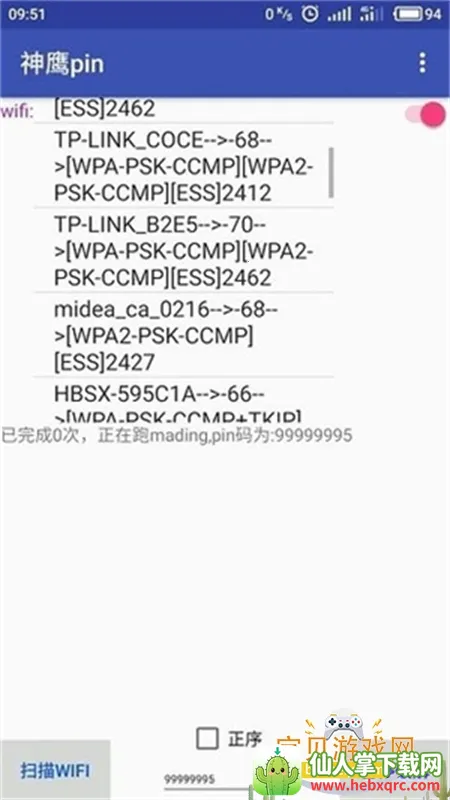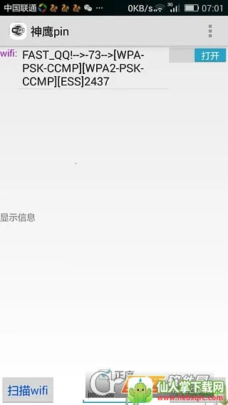 神鹰pin是一款超棒的免root WiFi破解工具。它能帮你快速获取附近可用WiFi密码,轻松突破网卡限制。无需root权限就能使用,特别方便。界面简洁干净无广告,使用起来超清爽。它可以自动识别周边所有可用免费WiFi,还有超强密码查看功能。能快速验证本地密码,甚至还赠送移动数据。支持批量扫描多个WiFi热点,快速破解并自动连接可用网络,效率超高。内置WiFi测速功能,可检测信号强度,优化上网体验。不管是出门在外流量不足,还是想找回遗忘的WiFi密码,它都能搞定。操作简单,兼容性强,适合Android 5.0及以上系统的普通用户。按照教程,在本站下载安装后,点击wifi扫描,选好想连接的WiFi点击开始查看,等解析成功就能畅快上网啦,真的超实用!