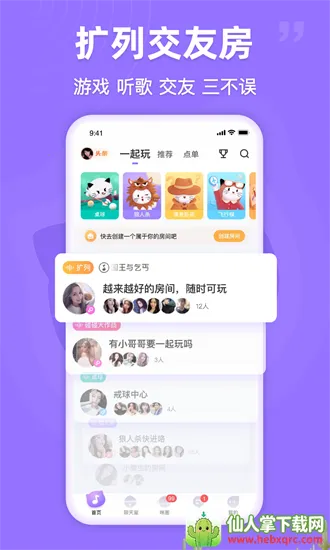 1. 轻松交友:能与陌生人自由聊天,在多人语音室通过多种语音主题玩法轻松连麦,发现好声音,找到亲密朋友。还可在交友广场随时随地分享心情,记录精彩瞬间,轻松结识更多伙伴。