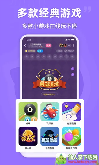 2. 丰富娱乐:拥有多种内置音乐和娱乐频道,汇集各娱乐领域高颜值技术大师。能免费体验许多新的动感娱乐方式,在娱乐室找到技艺高超的大师用声音娱乐自己,享受音乐频道的专业歌手和高品质歌房。