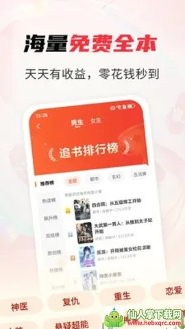 天天追书最新版是一款出色的免费手机追书软件。它拥有百万量级网文资源库,界面极简清晰。资源按男频女频分类,涵盖多种题材,免费畅读超方便。每日更新连载,让读者紧跟剧情。读书社区汇集书友推荐,能帮读者轻松告别书荒。支持缓存、听书,还有护眼模式。添加书签、记录进度,方便随时阅读。操作简单,搜索高效,能精准推荐符合口味的小说,给读者带来优质的追书体验,沉浸精彩小说世界。