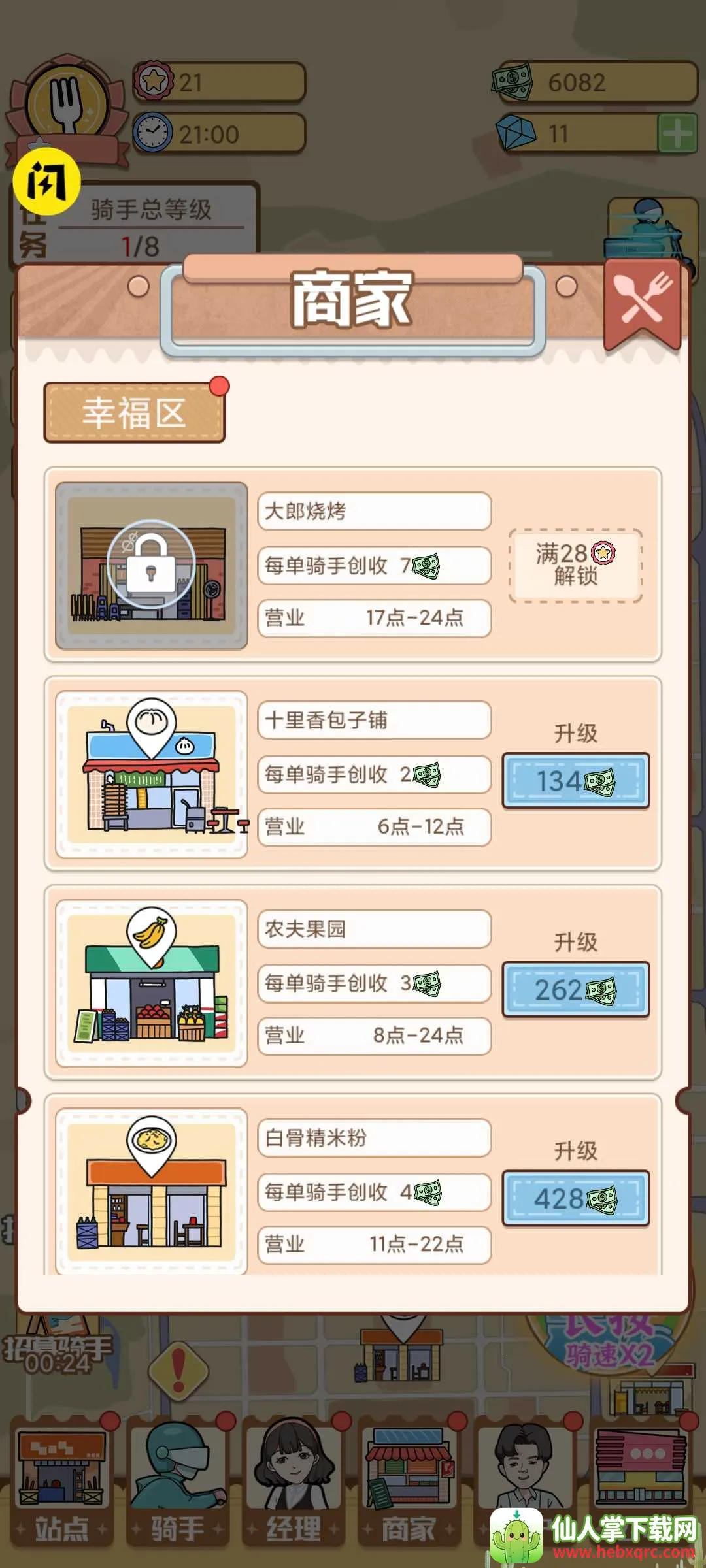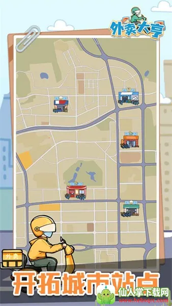 2. 关卡推进可开拓城市区域,建设更多外卖站点,布局庞大商业帝国。