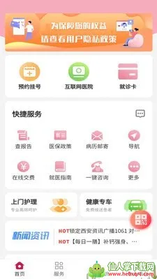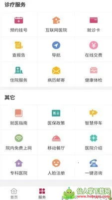 4. 涵盖预约挂号、互联网医院、查报告、病历邮寄、住院服务、健康专车、上门护理等多项就医服务,还有院内导航、一键咨询、在线交费等便民服务。