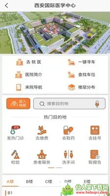 3. 具备3D导航模式,方便用户观察门诊医院,精准找到所需科室。