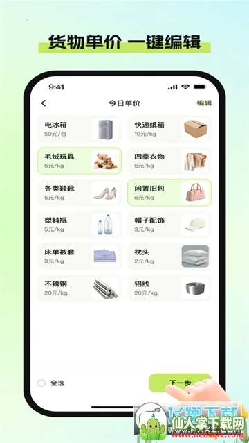 3. 分类清晰易操作:软件分类清晰,能直接选择回收物品类型并设定回收价格,让废品回收流程简单明了,易于操作。