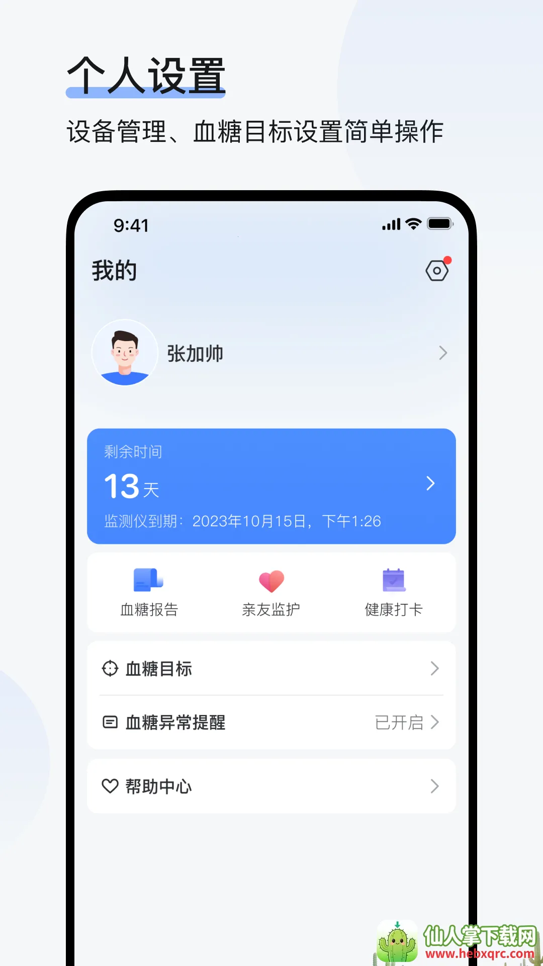 个人设置便捷:集成设备管理、血糖目标、提醒策略、报告入口与健康分享等常用功能,集中在“我的”页,减少寻找成本。