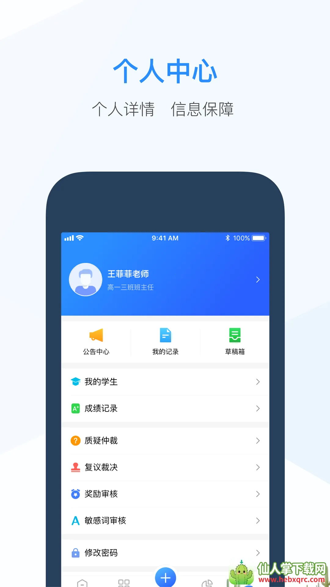 3. 数据保障:工作台数据保障,高效便捷,个人中心保障信息安全,让教师工作更安心。