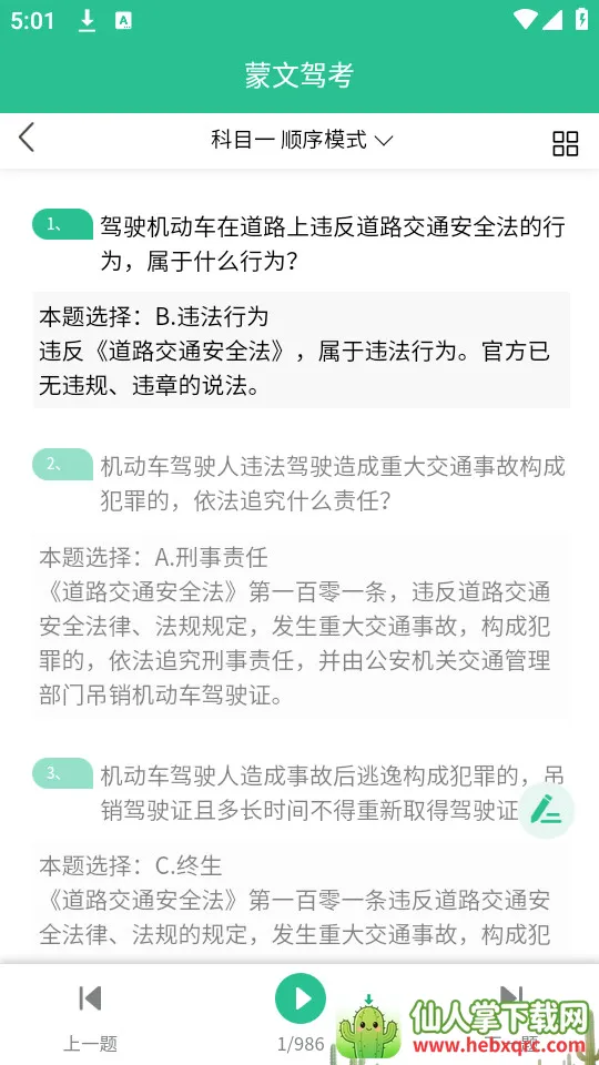 1. 蒙汉双语切换:支持蒙文汉文双语切换语言和题库,为不熟悉汉语的蒙古族用户提供便利。