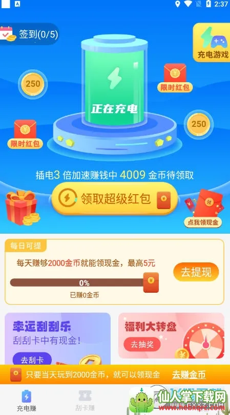 充充赚APP是一款很不错的手机充电管理软件。它能实时监测系统电量,让你随时掌握手机电池状态,还能保护电池健康、优化电池,延长电池使用寿命。它有个很吸引人的功能,就是充电能赚钱!每天给手机充电的时间可以兑换成现金收益,充得越久赚得越多,边充电边用闲暇时间就能轻松赚零花钱。而且金币能自动兑换成零花钱,低门槛一键提现,现金收益秒到账。另外,软件里还有丰富的趣味活动、充电任务和金币奖励系统,比如玩玩小游戏就能大量赚金币,还有每日任务签到也能赚取不少金币。它还有一键快速领取离线红包、查看限时红包信息等功能,能提高红包领取和使用效率。总之,充充赚APP在充电赚钱的同时,还能全方位管理手机电池,给你带来便捷又有趣的体验。