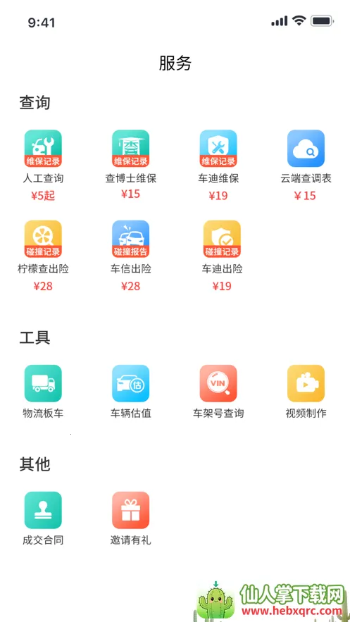 服务模块涵盖汽车维修保养记录查询、汽车保险理赔查询、车辆检测等服务,能为用户提供便捷满意的查询体验,保障交易安全。