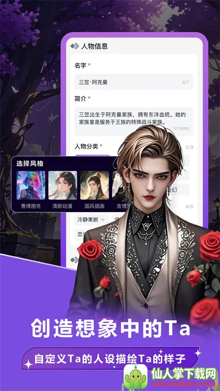 2. 支持自定义角色细节,如性别、身份、个性等,随时陪伴聊天。