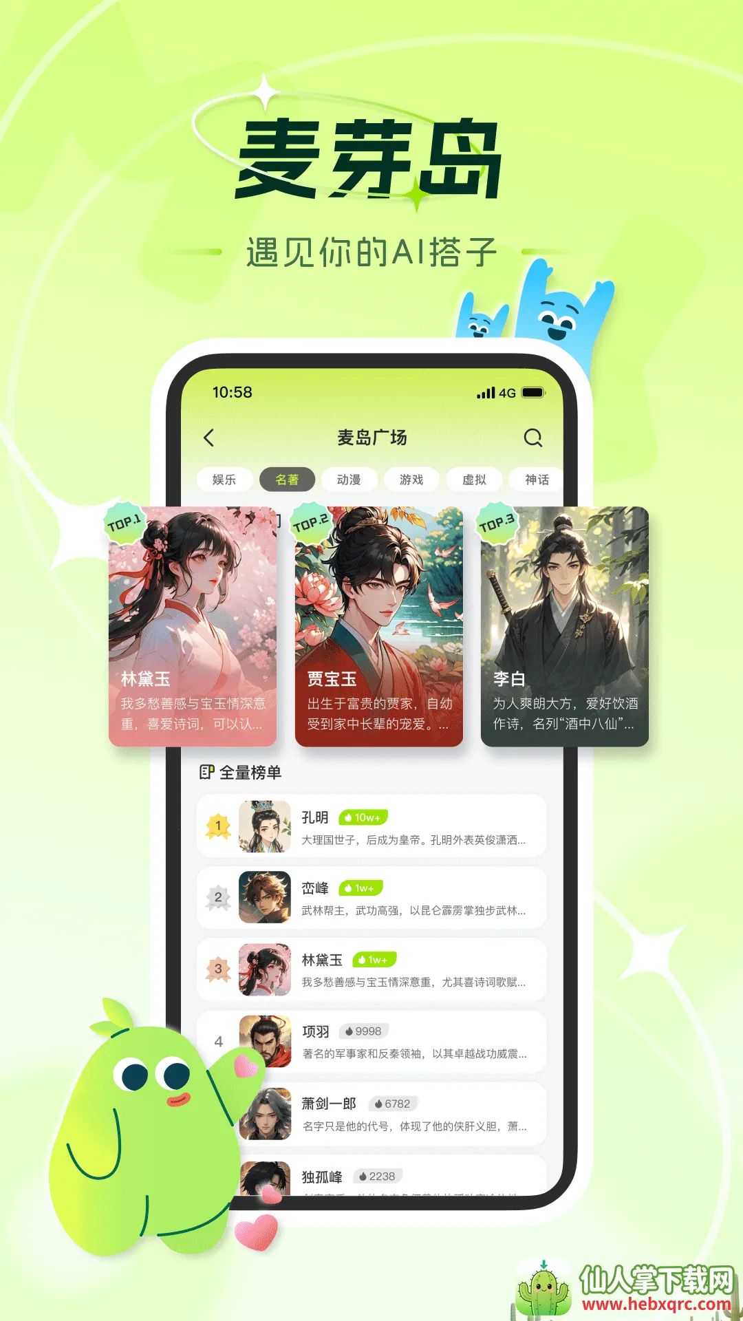 麦芽岛App以虚拟角色为基础构建社交平台,为用户带来独特体验。它支持多平台,能填补现实社交空白。用户可自定义麦子形象,通过文字、语音、视频等多种方式与角色互动,还能自由探索虚拟场景。软件提供丰富活动任务,增强社交活跃度。其深度个性化角色创建、沉浸式对话体验及动态剧情系统很有特色,能满足情感陪伴、创意激发和社交探索等多种需求,是一款值得尝试的社交软件。