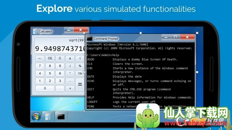 1. 高度还原经典界面:精准再现 Win7 登录界面、蓝天白云壁纸、开始菜单及任务栏结构,同步显示手机电量信号强度等状态信息,支持主屏幕切换与快速启动栏自定义,交互逻辑与真实系统高度一致,带来沉浸式怀旧体验。