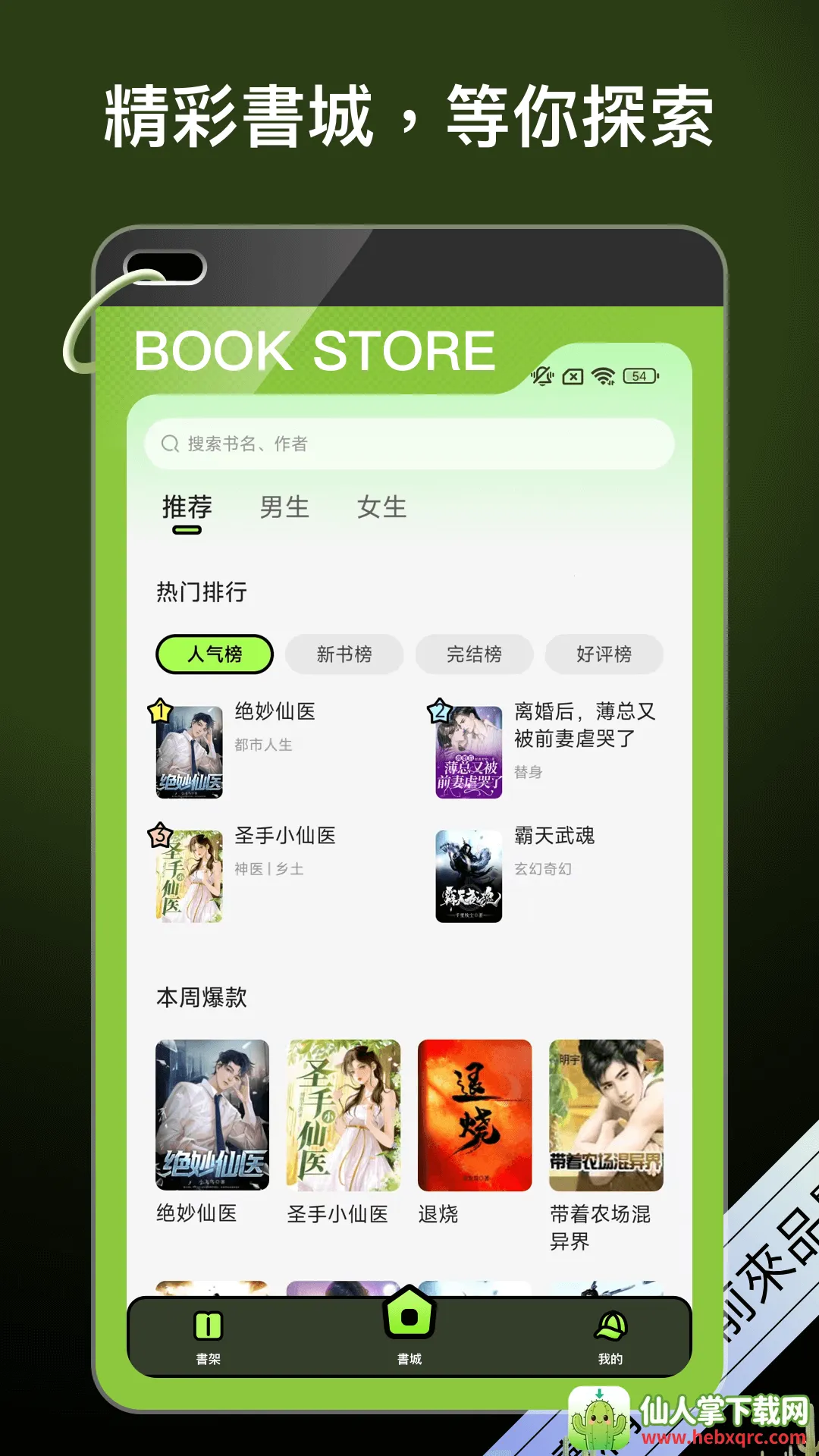 4. 系统会根据喜好推荐热度最高的小说,还能查看书友推荐和热门排行榜,快速找新书。
