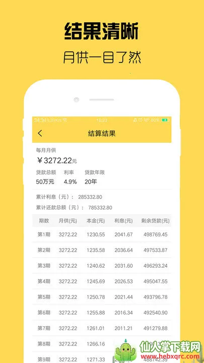3. 数据超清晰:详细展示每月还款明细,本金、利息、剩余贷款一目了然,提供直观统计报表和月供图表。