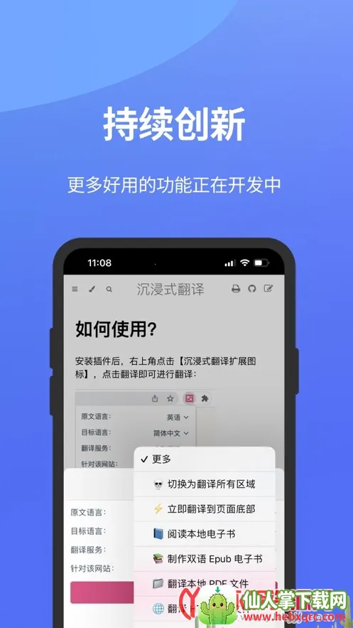 沉浸式翻译最新手机版是多功能AI翻译神器,支持多语言全局翻译,集成多款AI模型,可设自定义术语库。有网页、全局等翻译功能,特色是多语言、深度定制、快速精准,还能助力学习,满足不同场景需求。