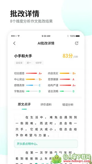 2. 精准点评与智能提升:通过12维度精准点评,还有AI润色功能,能有效解决学生素材积累难、练习积极性低等问题,助力写作能力精准提升。