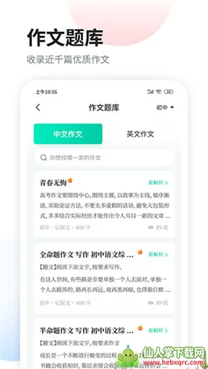 1. 海量资源适配全学段:拥有海量题库资源,多文体标准适配,覆盖小学至高中全学段,满足不同阶段学生的作文学习需求。