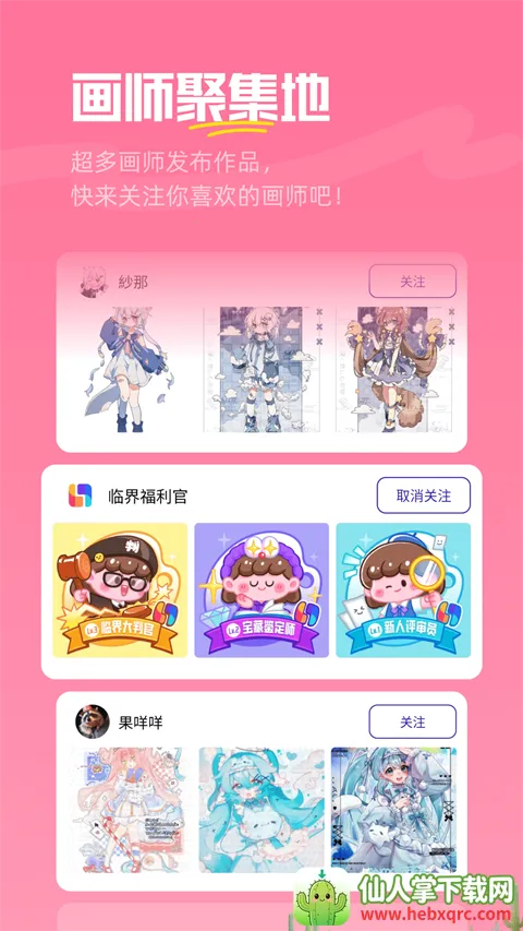 2、有超多 OC 创作展示发布功能,可自由发布和讨论喜欢的作品,还能关注创作者,与他们零距离互动。