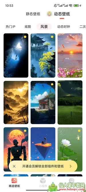 1. 壁纸资源丰富多样,涵盖海量精美动态、静态壁纸及个性化主题,无论是酷炫科幻还是温馨卡通风格,都能一键下载应用。