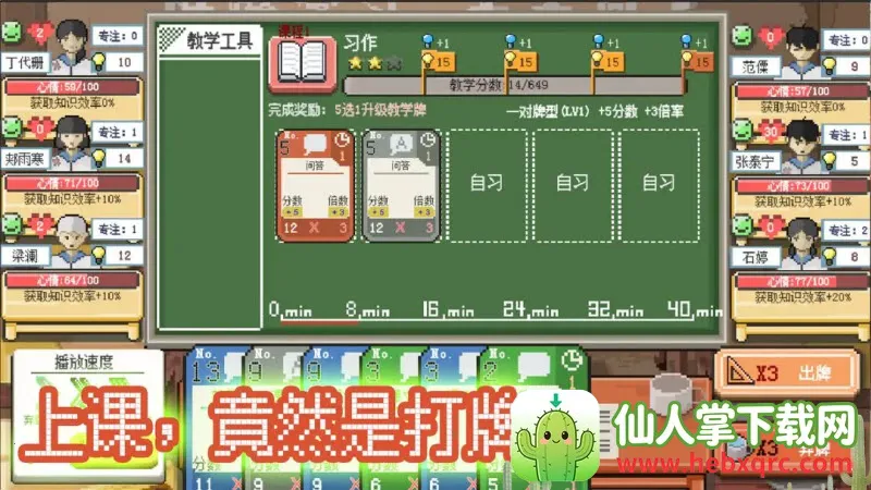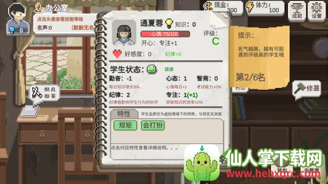 你可以凭借自己的能力培养学生,提高他们的成绩。游戏画面卡通,音乐温馨,自由度超高,能和不同孩子交流互动,合理分配时间。而且它有手绘像素艺术风格,四季变化影响教学安排,还有多结局设定。