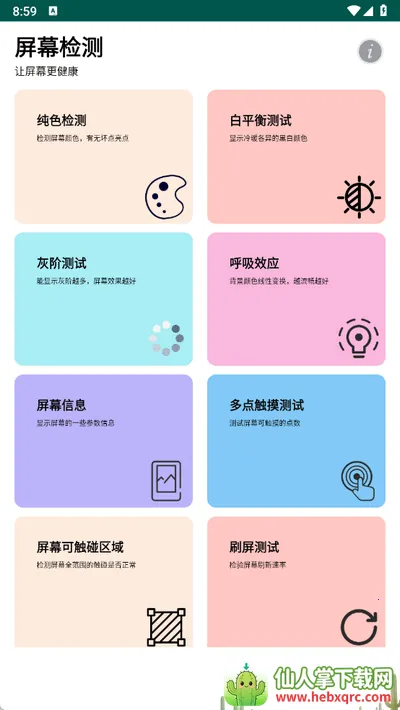 1. 提供多达8种模式的检测方式,从不同维度对屏幕健康进行全面评估。