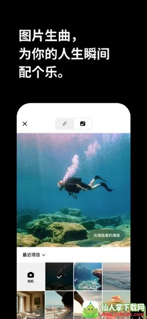 2、图片成曲:随时随地上传图片即可生成歌曲,为人生瞬间配乐,创造独特音乐体验。