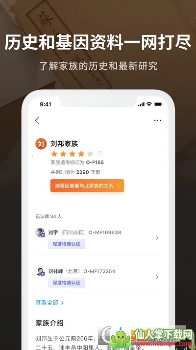 2. 能自动匹配姓氏家族,依据个人信息持续匹配,提供祖源服务。