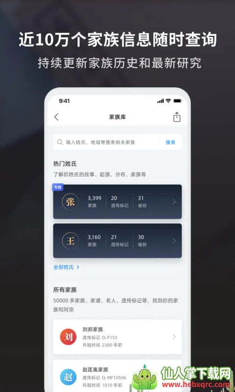 1. 拥有近10万个家族信息,随时可查询,家族历史还持续更新。