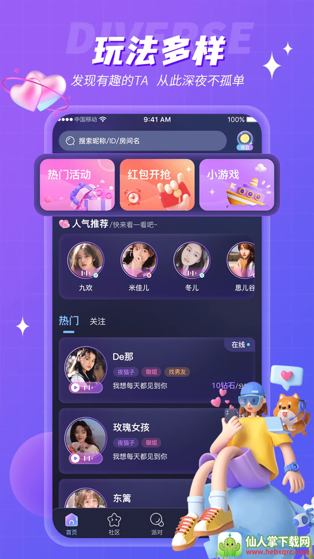 嗨聊支持多种交友模式,非常方便。您可以通过视频、语音等多种聊天方式,轻松寻觅属于自己的缘分,扩大朋友圈,找到更多有趣的灵魂。