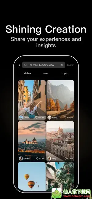 1 精彩丰富的短视频作品,覆盖美食、旅游、时装、汽车等题材。